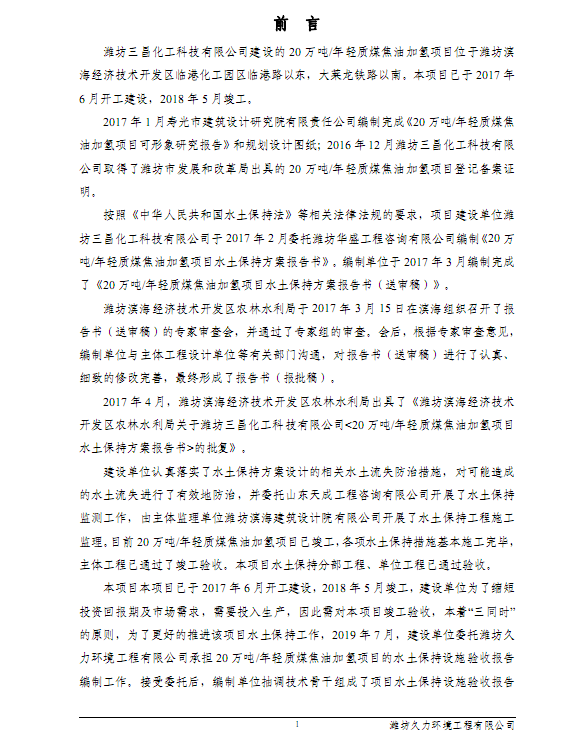 20萬噸/年輕質(zhì)煤焦油加氫項目水土保持設(shè)施驗收報告 2019-9-4 本文被閱讀 13925 次