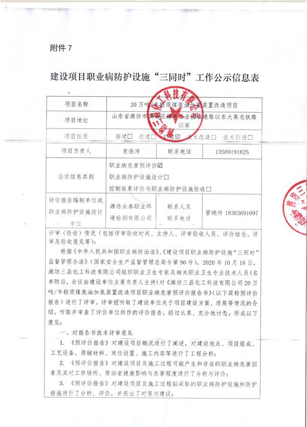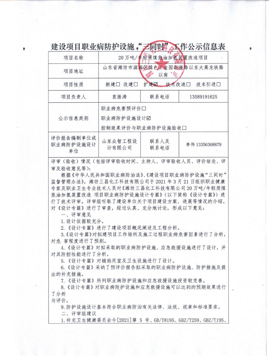 20萬噸輕質(zhì)煤焦油加氫裝置改造項(xiàng)目職業(yè)病危害預(yù)評(píng)價(jià)公示信息表
