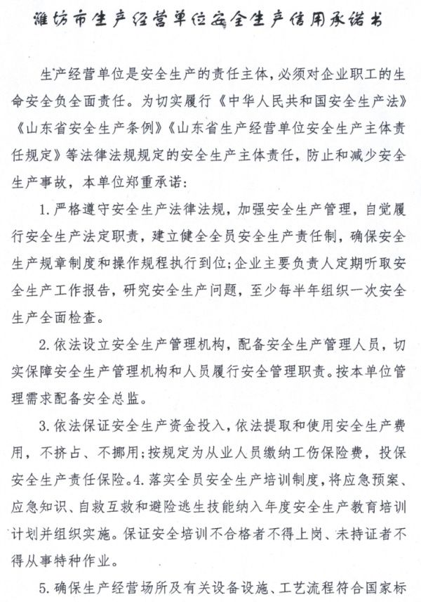 濰坊市生產(chǎn)經(jīng)營(yíng)單位安全生產(chǎn)信用承諾書